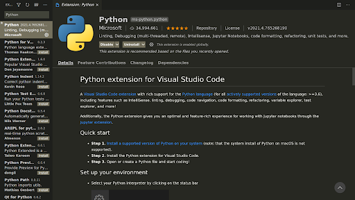 Install Microsoft Python extension,